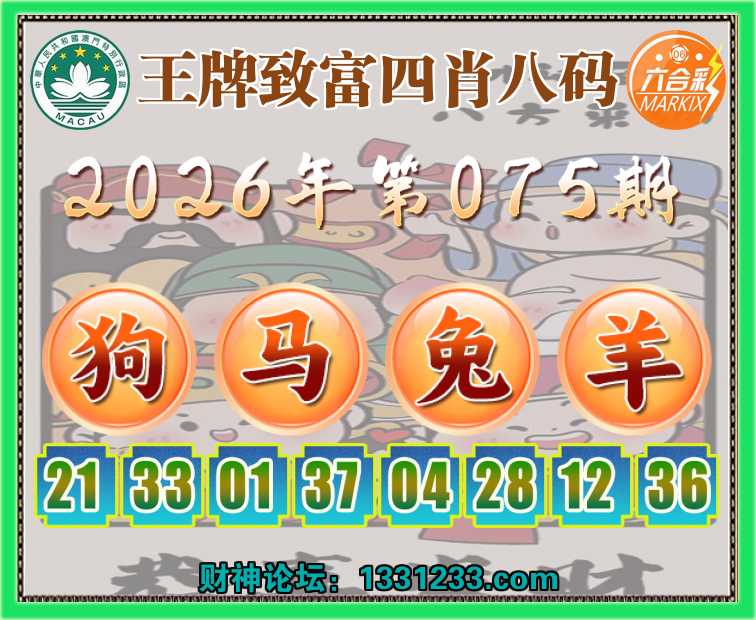 075期:『王牌致富』 🥖四肖八码🥖【狗马兔羊】开:00准